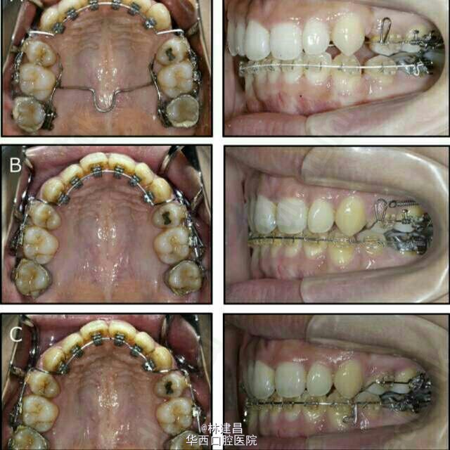 舌侧矫治技术中因为视野有限、托槽之间距离短、弓形不规则和复杂的粘结/去粘结等因素,让舌侧矫治的推广收到一定限制,曾出现了一段时间的停滞发展。随着舌侧自锁托槽等一系列新技术的出现(包括直丝弓技术、个性化定制托槽、弓丝弯制机械手、种植钉支抗技术等)让舌侧矫治技术得到进一步完善,目前在临床上又出现了再度复兴之势。但有临床医师提出仍然有一个问题舌侧矫治尚难以解决,即在复杂病例中,舌侧矫治器无法和舌侧辅助装置联用。例如在有横向不调的患者中,舌侧矫治器无法与舌弓、四眼圈簧、固定式快速扩弓装置联用。因此用舌侧矫治技术治疗有多个维度上不调的复杂正畸病人存在一定困难。如下为大家介绍了一例用舌侧矫治技术治疗安氏II类患者伴上颌弓狭窄、第二磨牙反合的病案。因患者不同意做正颌手术,且因美观需求强烈要求行舌侧矫治。若使用常规舌侧矫治技术,患者严重的水平向和垂直向不调将难以解决,所以该病例主诊医师改良了舌侧矫治技术,配合舌弓的应用,治疗结果证明,该方法有效。