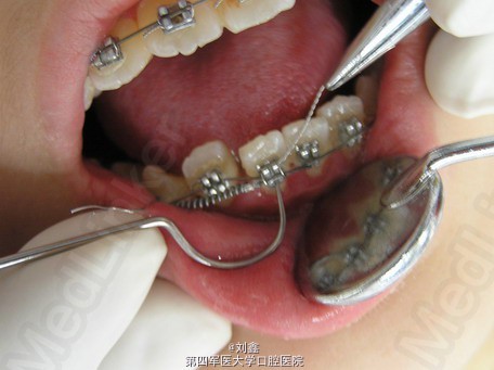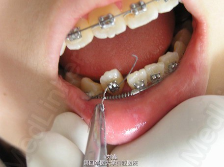 辅弓套推簧与镍钛圆丝联合应用矫治