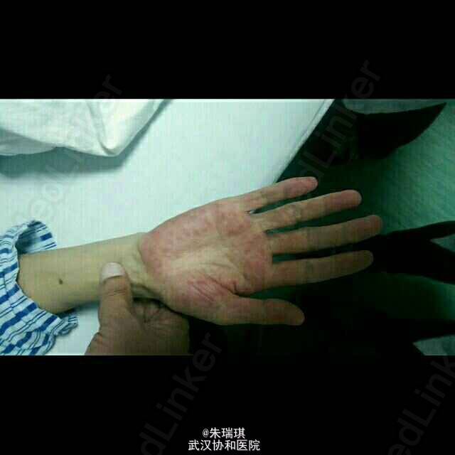 提到肝掌相信大家并不陌生,肝掌是由于肝功能减退,雌激素灭活减少进而导致血管充血,大小鱼际皮肤出现可压之褪色的点片状充血。 本例患者男,58岁,发现HCC三月,肝掌很典型,给大家分享一下。