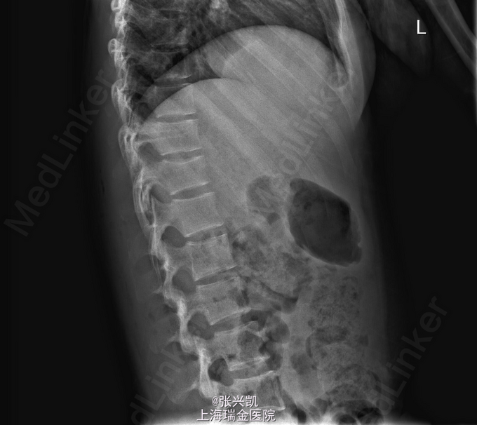 检查:腰背部叩痛,压痛明显,脊柱无侧弯,双下肢肌力及感觉正常,膝腱反射等存在,巴氏征(-)。 辅助检查:X线平片示:T11,L椎体骨折 头颅CT及肋骨CT示:T11椎体,左侧横突及椎弓,及L1椎体骨折 MR:T11,L1椎体新鲜骨折