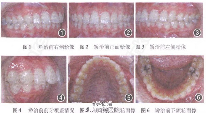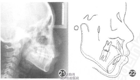 双颌前突,开唇露齿,侧貌呈凸面型。Ⅱ类错袷,磨牙远中尖对尖,Ⅱ度深覆拾、深覆盖,上牙弓前突,下牙弓中度拥挤。