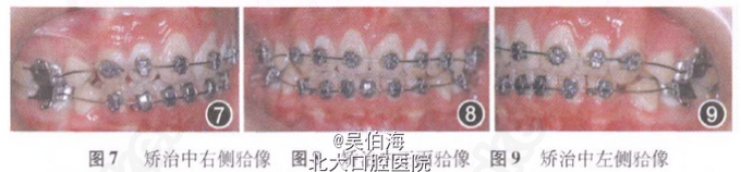 Ⅱ类错袷。矫治设计:①拔除4颗第一前磨牙;②使用Tip。Edge Plus直丝弓技术。矫治过程: (如.406 mm不锈钢圆丝作为主弓丝,打开咬合到对刃,矫治时间5个月(图7—9);②o.559 mm不锈钢圆丝作为主弓丝,水平牵引配合Ⅱ类牵引关闭拔牙间隙,调整磨牙关系,矫治时间6个月;③O.543 mm xO.71 l mm不锈钢方丝配合舌侧镍钛圆丝,行牙齿近远中倾斜度和转矩的矫治,矫治时间 5个月;③0.406 mm不锈钢圆丝作为主弓丝,进行咬合关系的精细调整,矫治时间3个月。