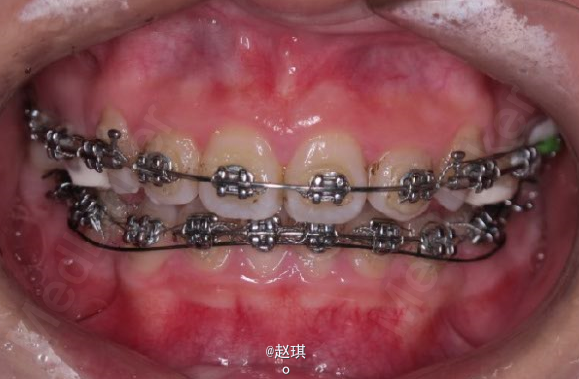 用过不少下前牙压低装置,如种植支抗钉,平面导板,还有一些压低辅弓,都不甚满意,要不是病人很痛苦,如下前牙压低所用种植钉极易造成创伤性溃疡,让人看了触目惊心!平面导板也好不到哪里去,以我自己为例,我曾经制作了压膜式阻鼾器,只戴了几分钟就忍受不了赶紧取下来,后来硬着头皮戴了一段时间就不戴了。我自认为我的忍耐能力还可以,都半途而废。看看我们的病人,我们把各种各样的矫治装置都往嘴里面塞,人家大多还能很好的配合,所以我很感慨:人的耐受性真是无限啊!相当来说辅弓的舒适性好一些,没有那么痛苦,但是一些辅弓操作很麻烦,没有相当的技巧很难完成!我感觉Bourston辅弓操作简单,效果不错。现介绍一例用Bourston辅弓矫治的病例。