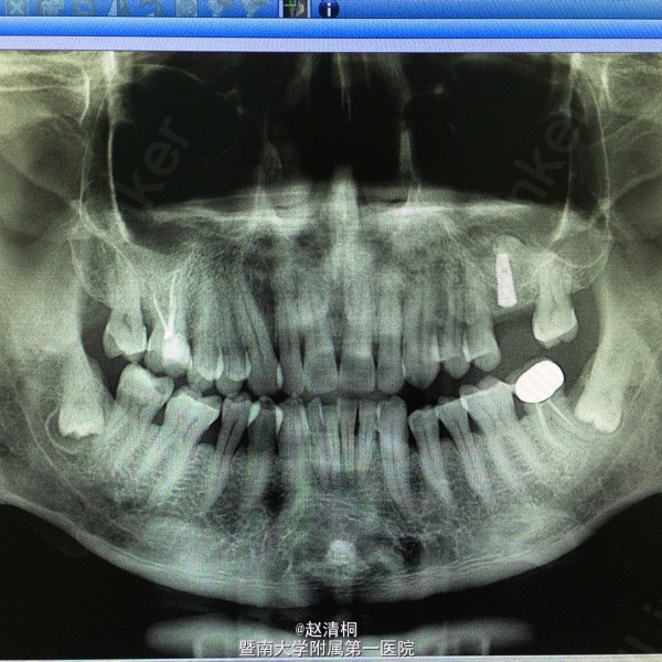 张某,男,左上6牙周炎,拔除三月后,余牙健康,要求种牙,全身体检正常