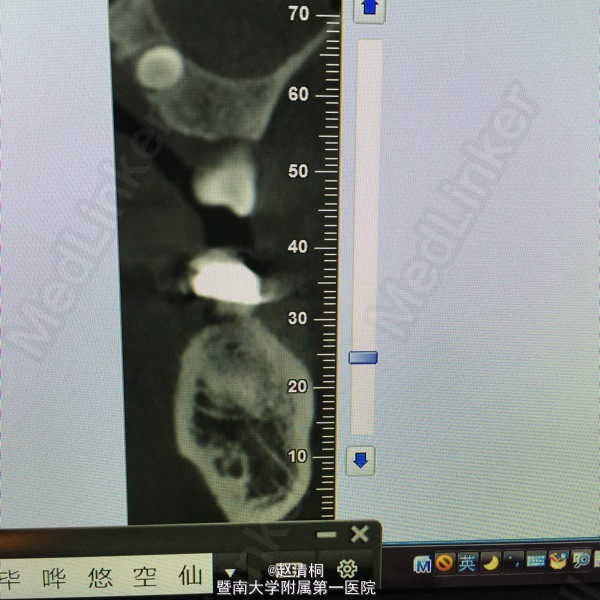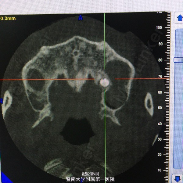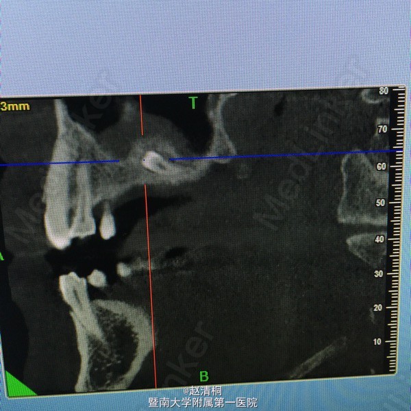CBCT显示只有3mm骨量,上颌窦内侧壁有一多生牙,没有CT,这种病例不敢种的。