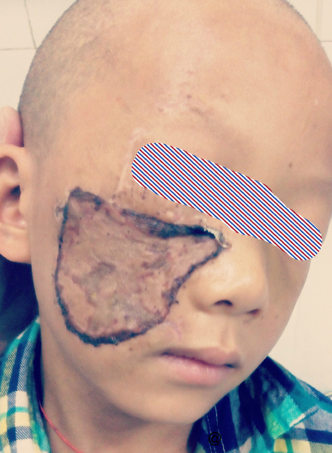 患者出院期短,尚未复诊。 讨论: 1、术后边缘疤痕问题处理? 2、面部塌陷问题二期手术? 3、患者成长期心理问题如何解决?
