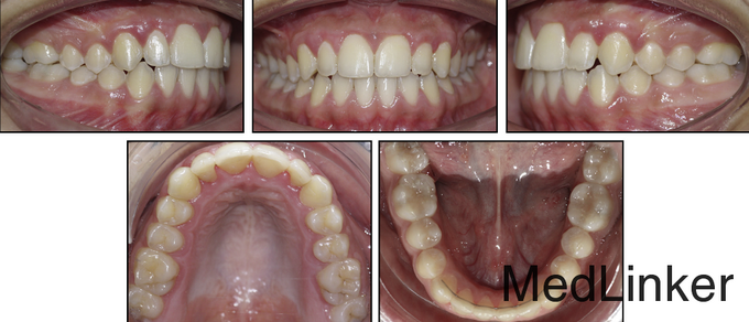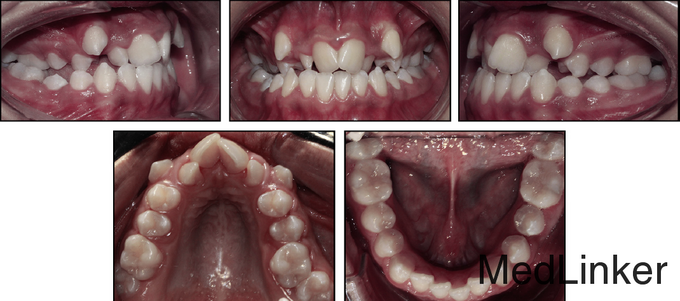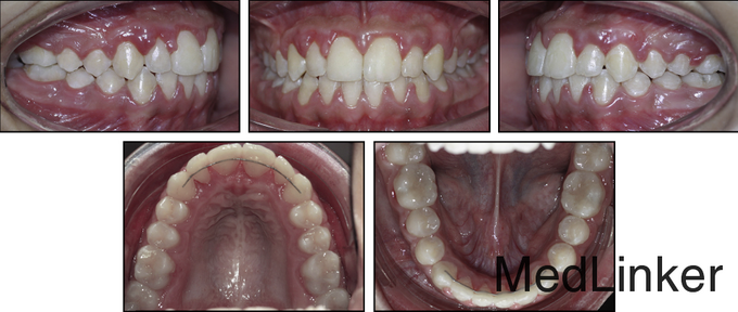 女,14岁,牙齿排列非常不整齐,微笑时牙弓特别狭窄,要求解决.小时候有鼻呼吸道的阻塞及过敏性鼻炎,可能是导致错合的病因。