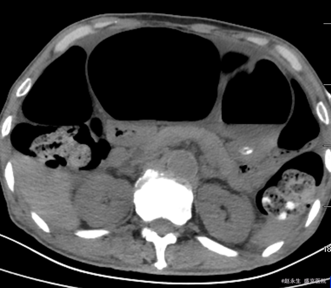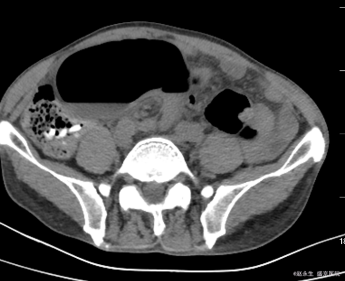 主诉:腹痛腹胀伴、停止排气排便5天 现病史:患者于5天前无明显诱因出现腹痛腹胀并逐渐加重,停止排气排便,就诊于当地医院诊断“肠梗阻”并给予胃肠减压等对症处理,腹痛略有缓解。1天前腹痛腹胀再次加重,呈阵发性绞痛,无发热寒战,无恶性呕吐,无咳嗽咳痰及呼吸困难,现患者为求进一步诊治来我院,急诊查腹部CT平扫提示:乙状结肠扭转,伴盆腔渗出,积液。急诊以“乙状结肠扭转”为诊断收入院。起病以来,患者精神食欲欠佳,睡眠一般,小便正常,体力体重未见明显改变