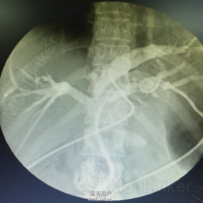 患者中年女性,做过胆切,肝总管切开取石,T管支撑引流术的,术中发现左肝内胆管畸形梗阻,胆囊位置变异,胆道术后开始腹痛,发高烧,考虑结石复发。 一下CT和放射片来看,结石到底在哪?
