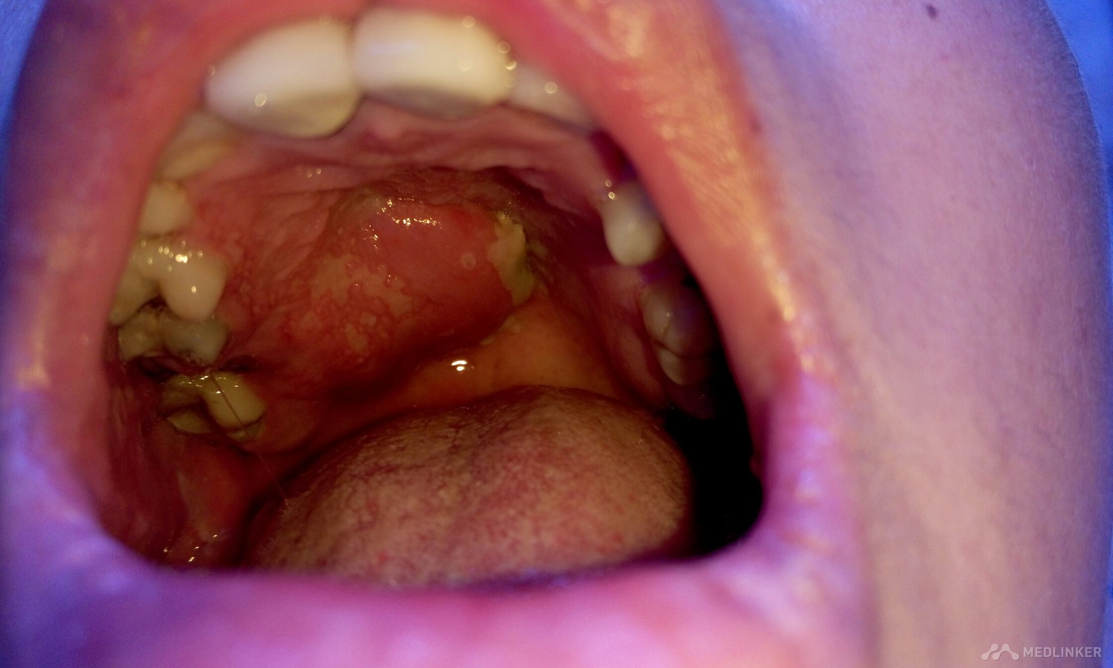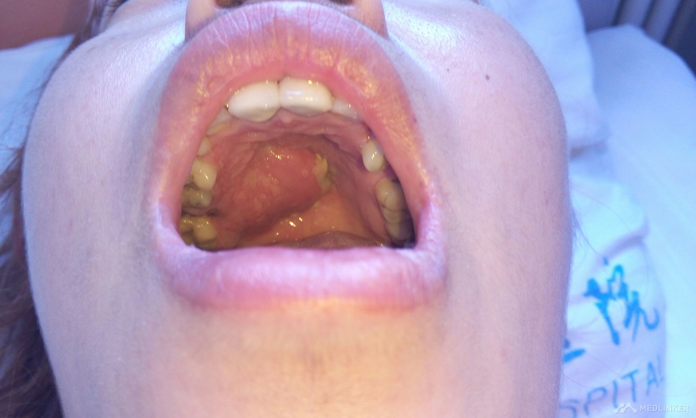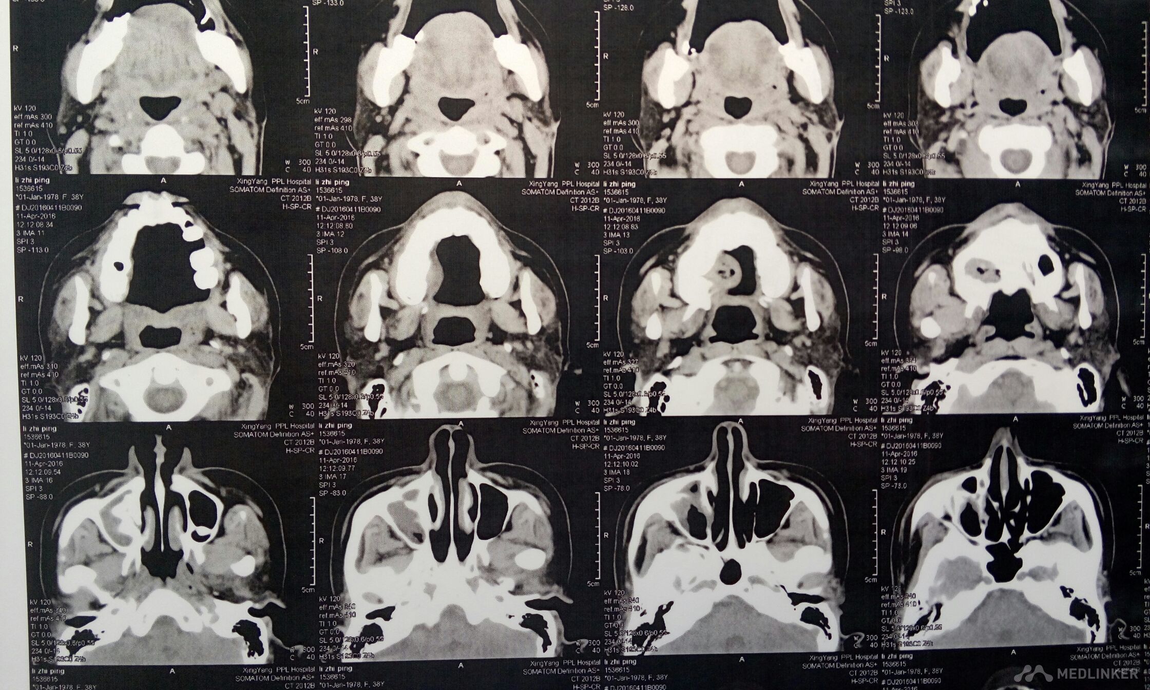 患者,女,38岁。因“发现右侧腭部肿痛一周”,来诊。查体:颌面部对称,张口度好。腭部右侧可见粘膜凸起肿物,约2*3cm,近中线处溃烂,有溢脓。CT检查可见肿物突入上颌窦及鼻腔,骨质破坏。现应用抗菌素治疗。拟行病理活检。请同仁看看手术方案?患者年轻,一侧上颌骨去除,假体如何修复?可否请鼻科联合手术,保留颌骨?