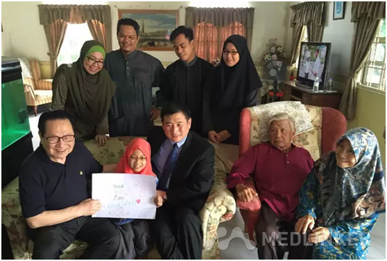 半个月后,艾琳抱着医生护士送来的鲜花出院了。4月27日,我和最早接诊她的医生穆锋博士一行,专程飞往马来西亚槟城。我们大吃一惊:艾琳在父母陪伴下,早已等候机场贵宾通道。更让我们高兴的是,艾琳已可以短暂站立了。4月30日上午,怡保,上百人齐聚艾琳的家,庆祝艾琳新生。艾琳带着头巾,笑容灿烂,她倚偎在我的怀里,说:“Grandpa,thank you!我爱你们!”