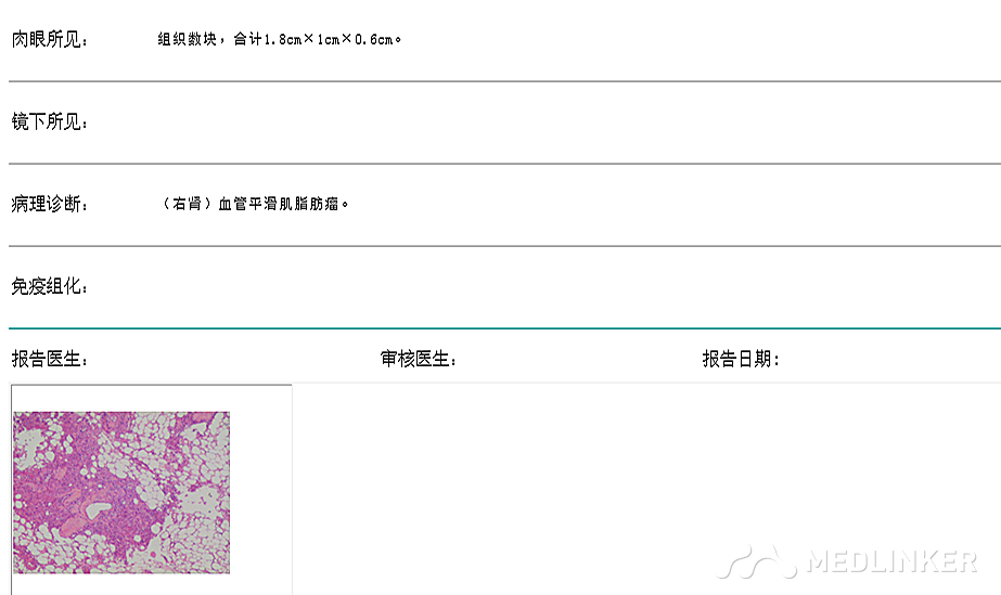 术后病理提示:右肾血管平滑肌脂肪瘤(即错构瘤)