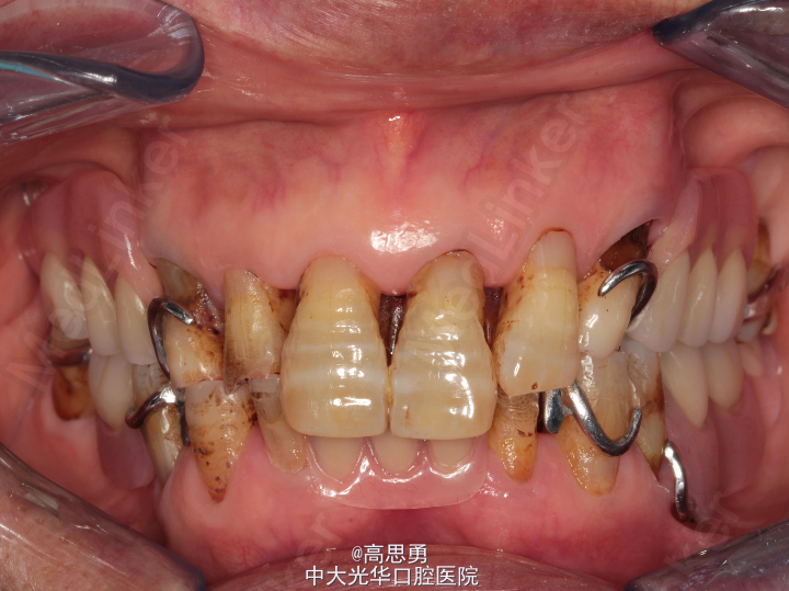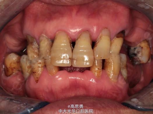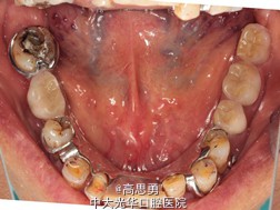 全口牙龈退缩至根颈1/3,牙龈无肿胀无瘘管