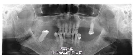 现病史:患者自诉上下颌个别牙因“牙周病”缺失20年余,曾于外院做活动牙修复后,自觉佩戴不适后不再佩戴,现因咀嚼能力下降,遂到我科就诊要求修复。