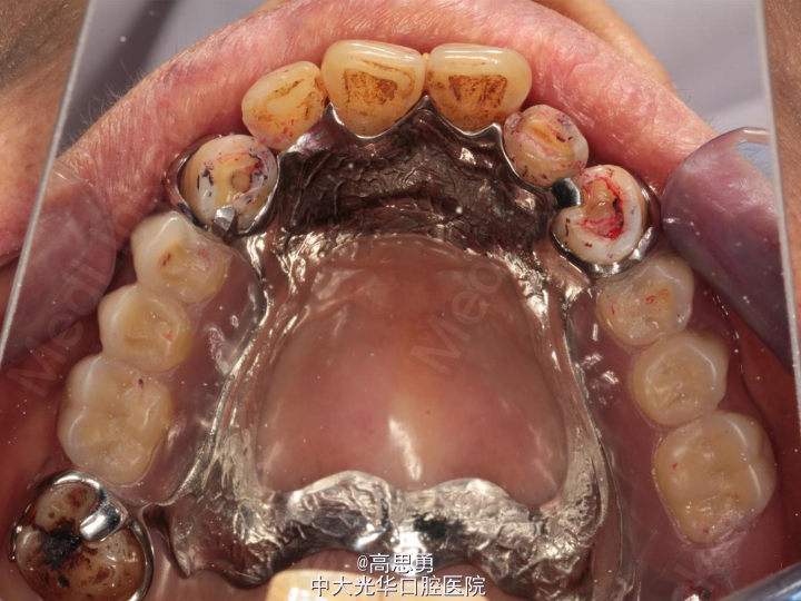 1、#13RCT后截冠后,上下颌覆盖义齿修复;