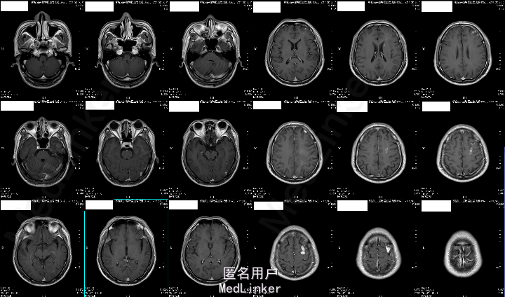 2015-05-26外院头颅MR:1.左额叶、枕叶病变考虑感染性病变可能性大(曼氏裂头蚴感染?)2.双侧上颌窦、筛窦慢性炎症。