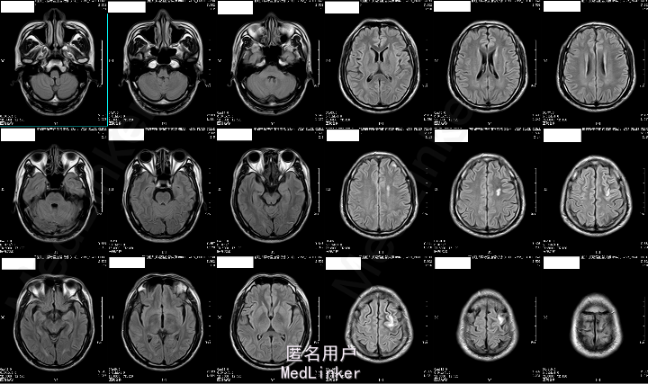 现病史:患者缘2015-05-21 14:30左右工作时出现右侧肢体乏力,继而出现右侧肢体及右侧颜面部抽搐,表现为右侧上肢屈曲、下肢伸直、口角右歪,随机跌倒在地(前额着地),双眼向上凝视,面色发乌,伴牙关紧闭、舌咬伤,无意识不清、口吐白沫,无大小便失禁,持续约10分钟后自行缓解,发作后感疲乏。遂由120送至就近医院就诊,行头颅CT平扫未见明确异常,予对症处理。2015-05-25 23时许患者于睡眠中突发右侧肢体及颜面抽搐,症状同求,伴意识不清,持续3分钟后自行缓解,5分钟后再次出现类似正常。1小时内发作与缓解交替。患者送至当地急诊科,测血压190/110mmHg,予“安定、甘露醇”等药物治疗后入院,患者在医院醒来时不知自己身处何地,感全身乏力。入院后患者出现低热(具体不详),间断出现2次右侧肢体抽搐,持续数秒;头颅MR提示“左额叶、枕叶病变考虑感染性病变可能性大(曼氏裂头蚴感染?)”。诊断“症状性癫痫、颅内寄生虫感染?糖尿病”,予改善循环、控制血糖、抗血小板聚集等治疗。后为进一步治疗收入我院。近2月记忆力较前下降,主要为近记忆力下降,精神稍差,性格改变,与家人沟通明显较少。