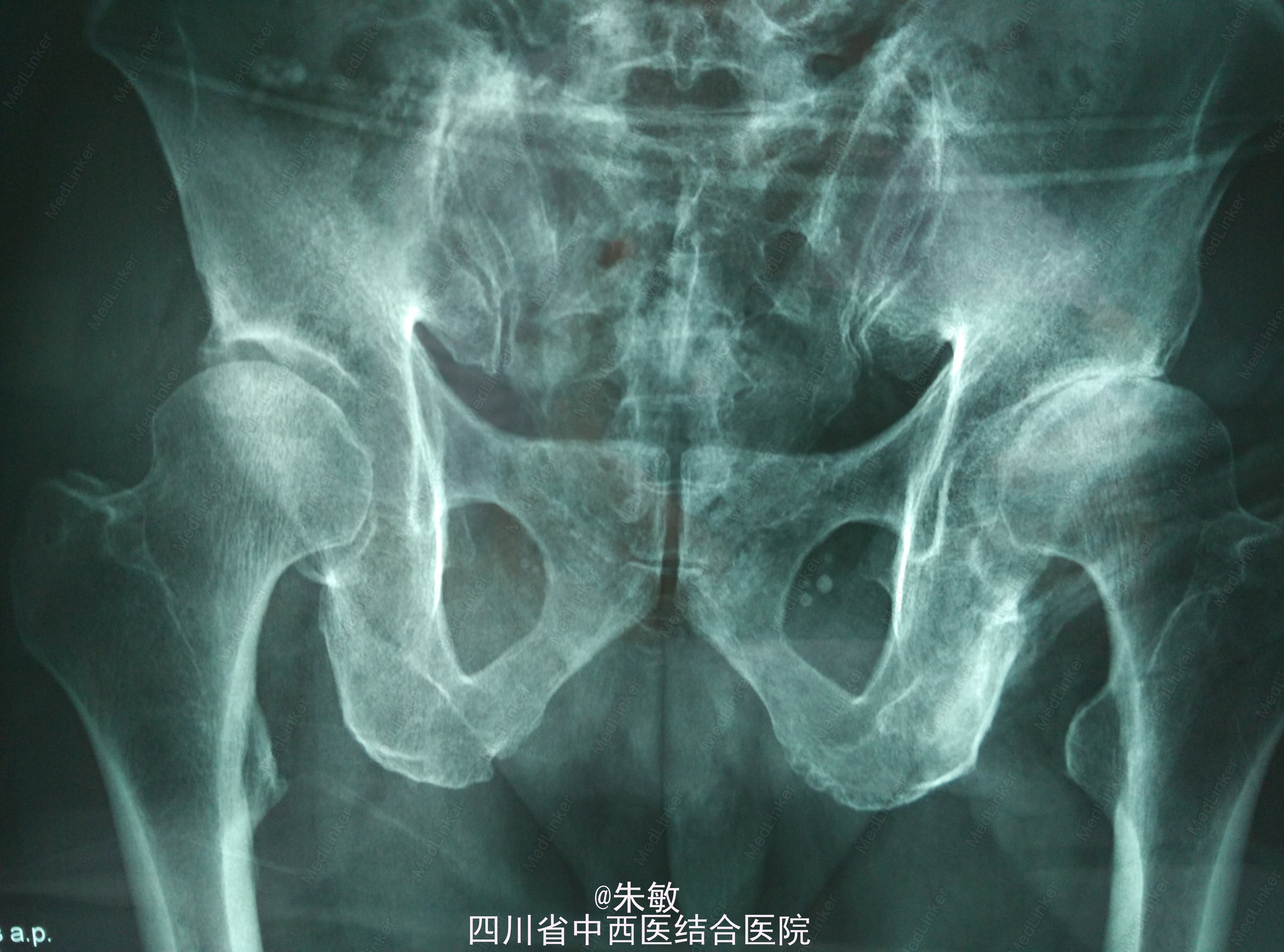 患者三月前有扭伤史,现在出现髋关节的疼痛。所以对于老年性患者髋关节外伤后,一定注意股骨头坏死的可能,提高警惕。