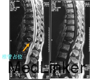 现病史:患者于3月前不慎摔倒,当时胸腰背部疼痛不适,活动受限,行走不能。未到医院诊治,在家卧床休息,腰背部疼痛变化体位、咳嗽时疼痛明显,不伴双下肢麻木,无大小便失禁。此后症状缓解。近2周来,患者外出时诉上述症状进一步加重,为进一步诊治收入我科。患者受伤以来,无昏迷,无腹痛腹胀,无大小便障碍。精神睡眠欠佳。