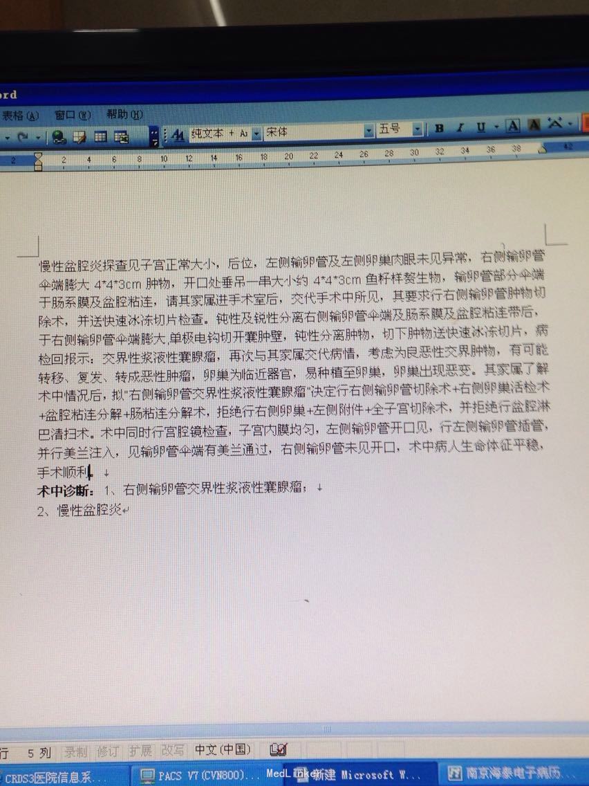 右侧输卵管交界性浆液性囊腺瘤,术中行右侧输卵管切除手术