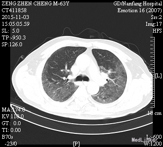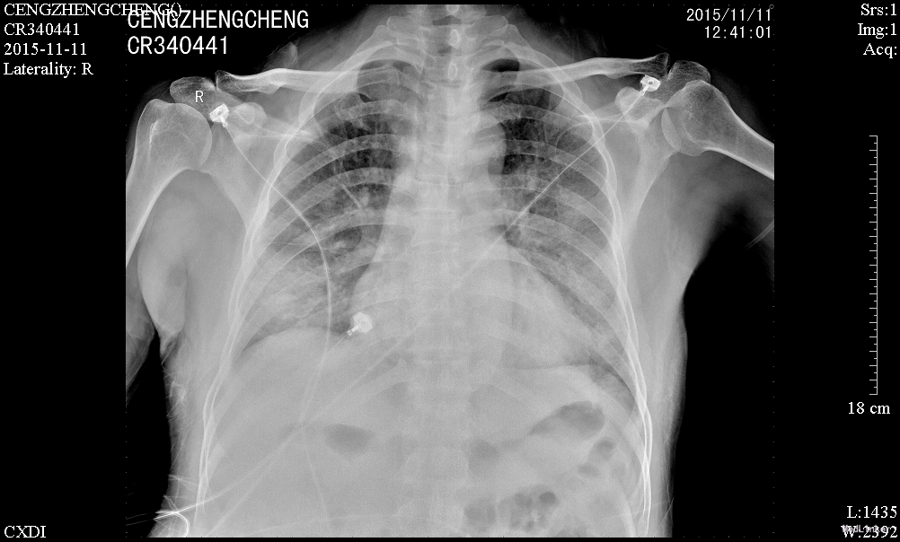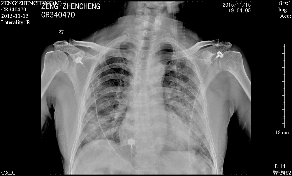 肾移植术后肺 部感染多发生在术后的早期,多数是在术后2~4月期间感染的。与这期间免疫抑制剂用量大,机体抵抗力低下有关。新型免疫抑制剂的临床应用,提高了肾移植的成功率,但也导致了机体免疫力降低,增加了各种感染的机会,以肺部感染最为常见,已成为肾移植患者死亡的主要原因。早期诊断和治疗对其预后尤为重要。 肾移植术后肺部感染早期的临床表现往往不典型,发热是其最常见、最主要的早期症状有发热,占 90%;许多患者入院时只有发热,开始为低热,咳嗽、咯痰、双 肺罗音均不明显,随后3-5天体温可达38.5℃以上;X线胸片已经显示肺部有点、片状阴影;病情发展迅速,咳嗽、咯痰及肺部罗音出现,患者很快会出现胸闷、呼吸困难、血氧饱和度下降,血气分析可有不同程度的低氧血症。所以肾移植术后早期出现发热,一定要摄胸片(或反复摄胸片),查白细胞计数,必要时行纤维支气管镜检查,或按肺部感染处理(排除排异反应)。 病原体的检测至关重要,需要反复、多次查血和痰的细菌、霉菌培养、痰涂片,必要时可行纤维支气管镜取分泌物查找病原菌。肾移植术后病毒感染较常见,特别是巨细胞病毒(CMV)最常见;由于CMV在正常人群中广泛存在,但多无临床症状,在免疫力低下时可使潜在的病毒复活、复制,导致肺部感染,死亡率高。激素对潜在的CMV复活影响很小,免疫抑制剂(如CSA、FK506等)可加速CMV的复制;CMV肺部感染无特异性,表现为高热、干咳、呼吸急促、白细胞减少,胸片多以片状或散在点片状影为主,也可扩散至全肺,呈间质性肺炎的表现;虽然获得CMV感染的直接证据很难,但PCR-CMV -DNA和CMV-IgM的检测可作为诊断依据。更昔洛韦对CMV感染治疗效果较好。 肾移植患者由于长期大量的用免疫抑制剂、肾上腺皮质激素,使机体抵抗力下降,加之强效广谱抗生素的应用,易造成机体菌群失调,导致二重感染,使机体正常分布的真菌大量繁殖、扩散。可适当抢先治疗,本例用卡泊芬净取得较好效果。肾移植术后肺部感染患者病情进展迅速,伴随着高热,可出现胸闷、呼吸困难、血氧饱和度下降等;治疗上除抗感染、化痰止咳外,必要 用呼吸机辅助呼吸,改善肺通气功能,提高血氧分压;可先采用无创的面罩吸氧,如氧合不满意,则改用有创的气管插管辅助通气,本例患者用无创呼吸机辅助通气取得较好效果。
