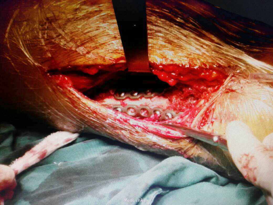 骨折还是碎的挺厉害的,从后侧入路要注意避免损伤重要的血管神经,这个手术基本上胫骨平台一圈都被剥离了,注意术后血供和愈合。