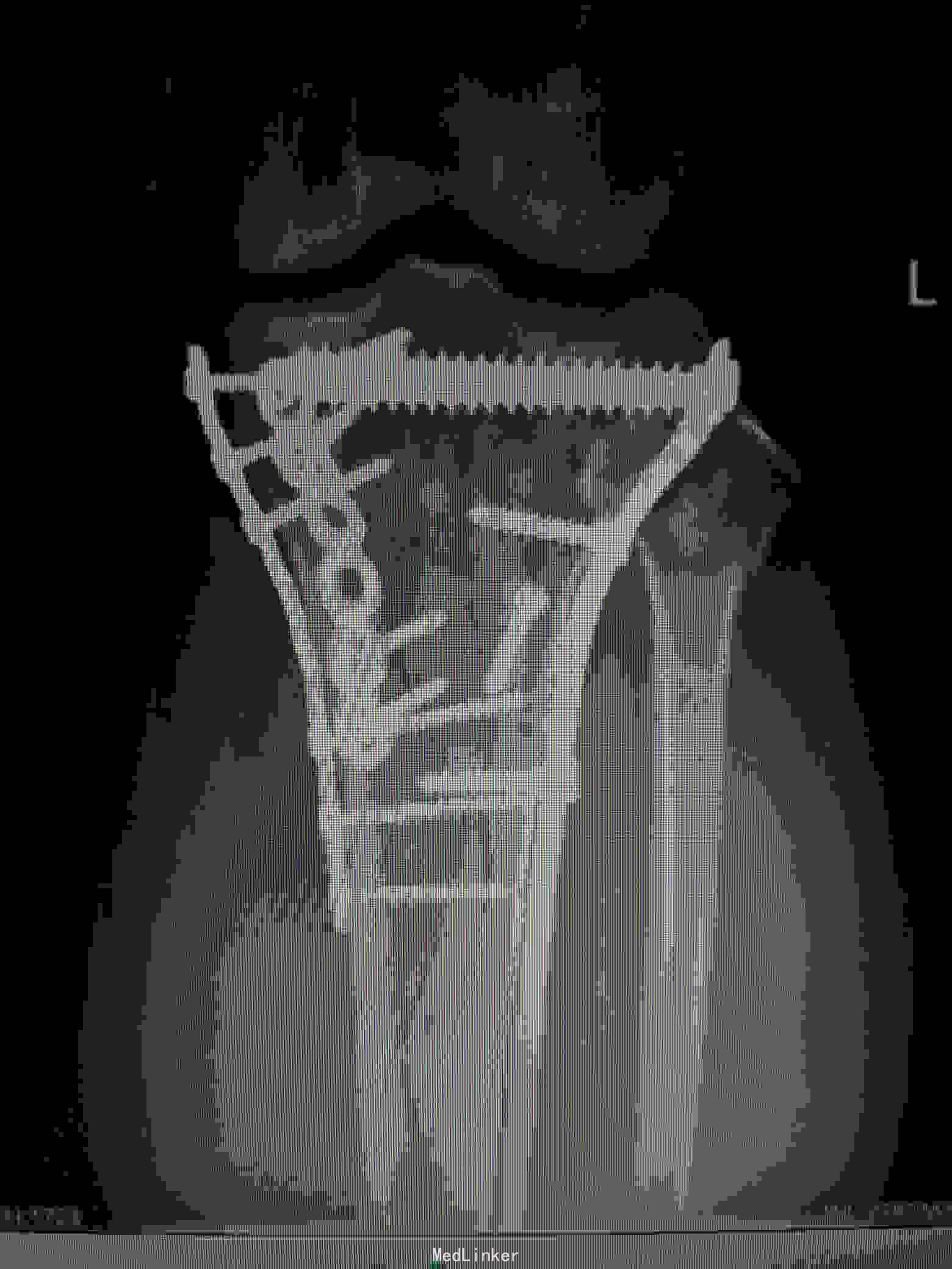 诊断:左胫骨平台粉碎性骨折(5型)。